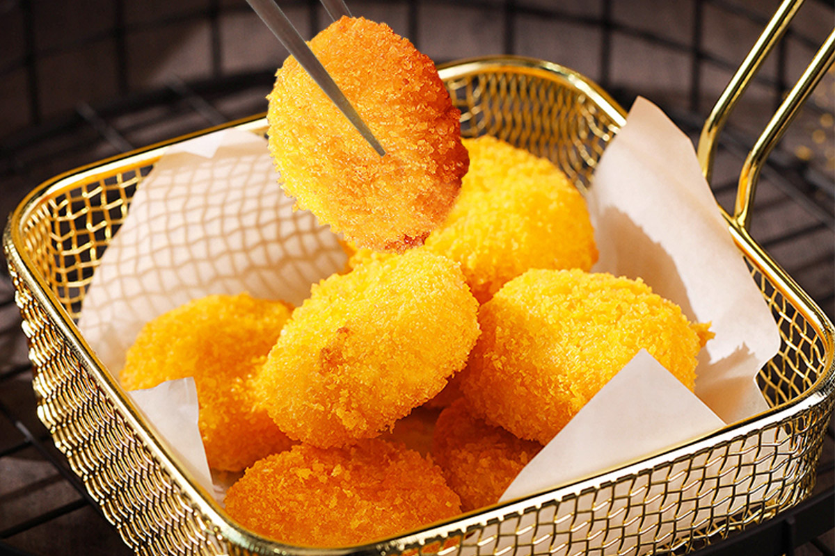 2020-09-23|閱讀數(shù):249原料:南瓜、糯米粉、雞蛋、植物油、紅糖、生粉、面包糠。制作方法:1、南瓜削皮,入鍋蒸熟,攪打成泥;2、南瓜泥加入糯米粉、少許紅糖,攪拌成絮狀,揉成南瓜面團(tuán);3、將南瓜面團(tuán)冷藏20分鐘,鋪薄層生粉,裹上蛋液,蘸面包糠...... -